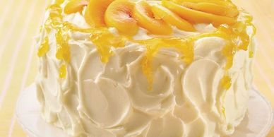 Combine peaches and 1 1/3 C water in med sauce pan, bring to boil and cool for 30 minutes till peaches are soft, add sugar and syrup and bring to a boil. Reduce heat and simmer 30 mins. Remove from heat add peaches and mix well. Place 1 cake layer on cake plate, spread with peach filing, spread 1C buttermilk frosting over filling and top with meringue layer. Spread remaining filling our meringue layer and spread 1 ½ C frosting over filling top on remaining layer spread top and sides of cake with remaining frosting as desired Chill for 2 to 3 hours.